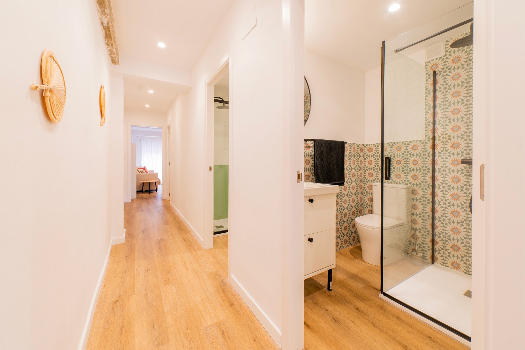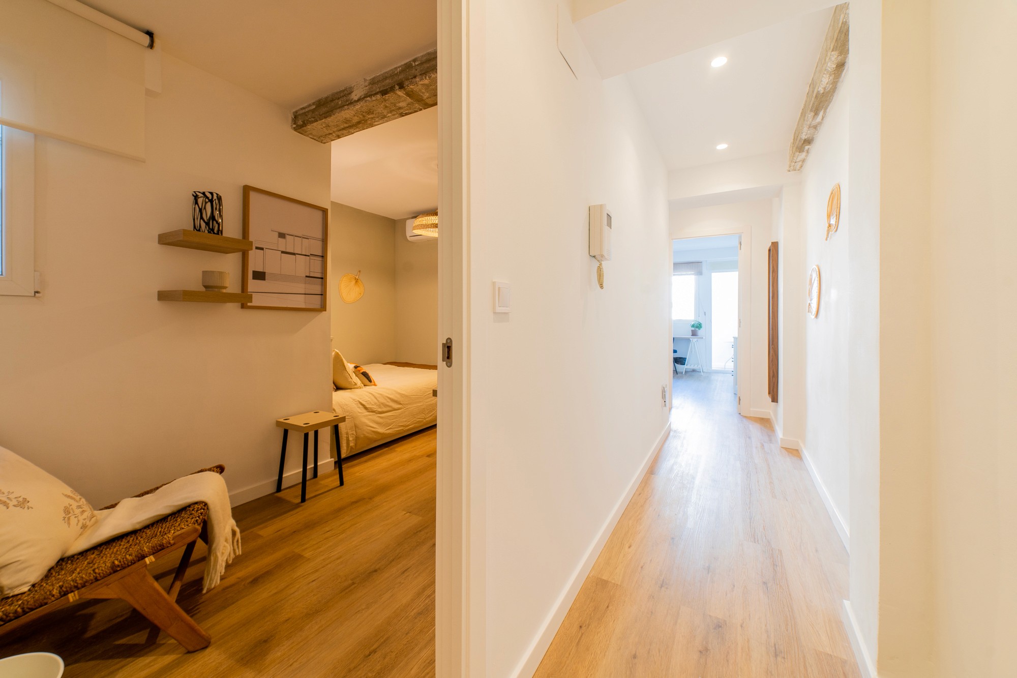 Bright, fully renovated room with air conditioning, a spacious double bed, and abundant natural light for a welcoming atmosphere.