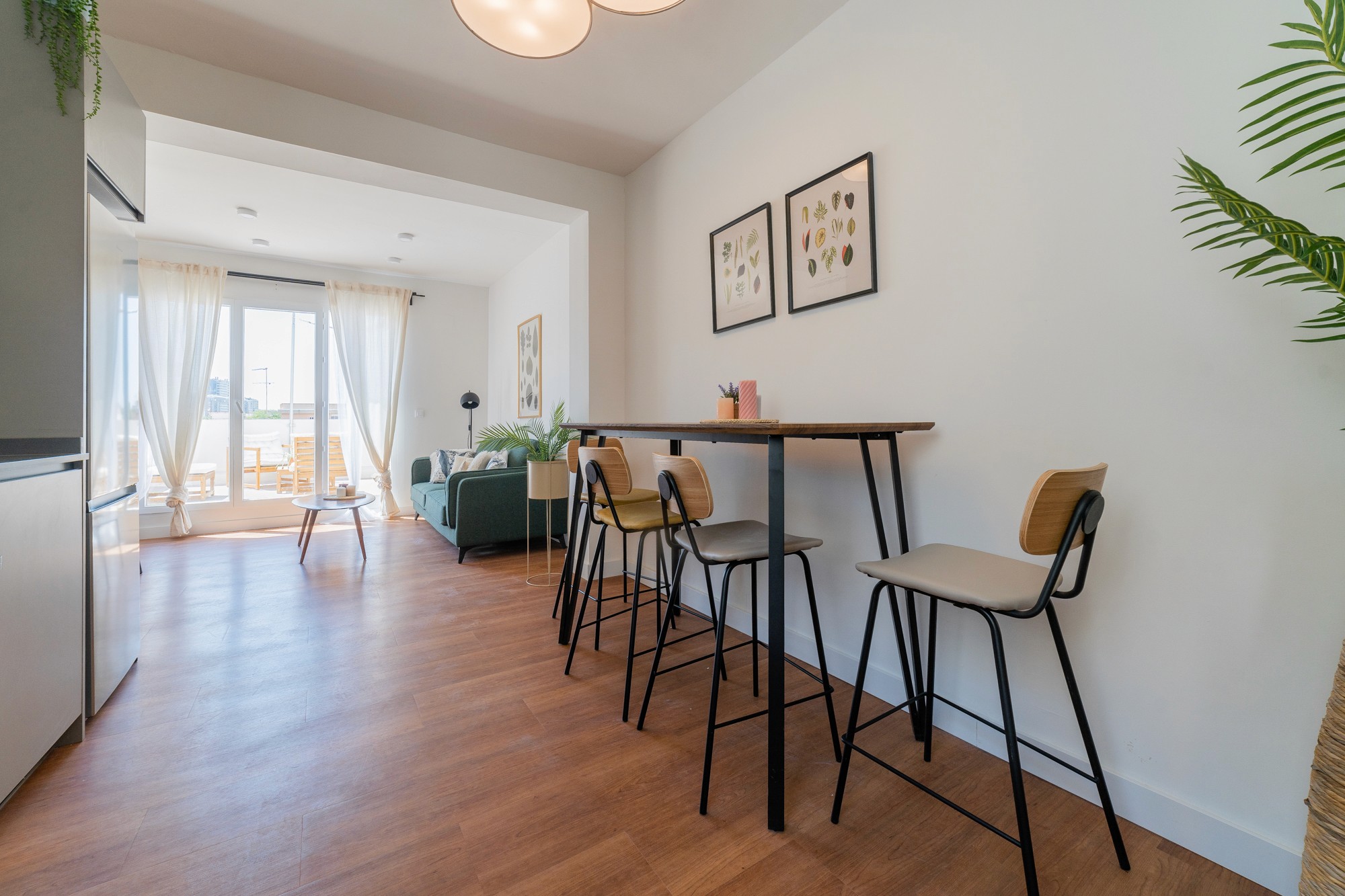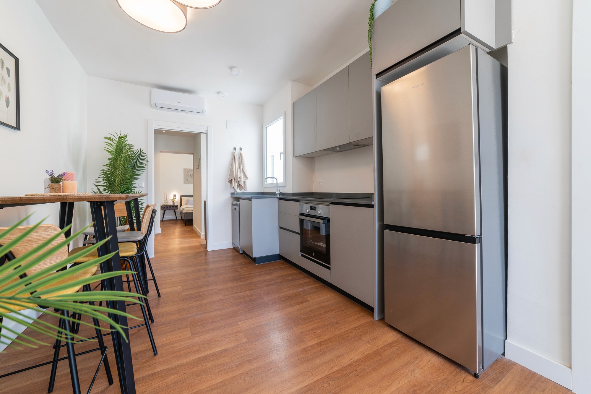 A bright full unit with private terrace. Includes air conditioning, a double bed, modern bathroom, kitchen and living room.