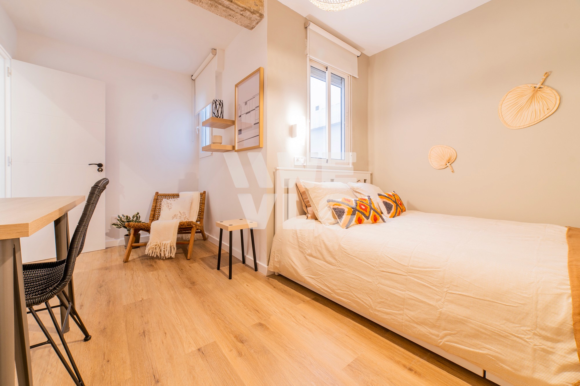 Een ruime, volledig gerenoveerde kamer met airconditioning, een dubbel bed en een studeertafel, ideaal voor comfort en productiviteit.